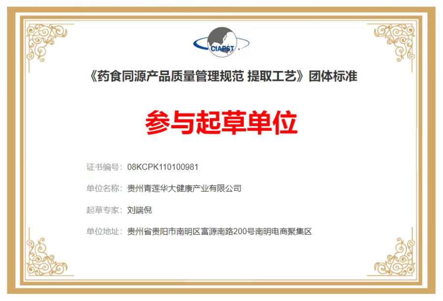 《药食同源产品质量管理规范 提取工艺》团体标准-参与起草单位
